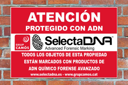 Un cartel de advertencia de 75x50cm diseñado para exteriores. Puede fijarse en paredes, puertas o verjas facilmente realizando un par de agujeros en los laterales. Una primera línia de defensa muy importante para avisar a los delincuentes que los objetos de valor estan marcados con SelectaDNA. "TODOS LOS OBJETOS DE ESTA PROPIEDAD ESTAN MARCADOS CON PRODUCTOS DE ADN QUÍMICO FORENSE AVANZADO" Tenga en cuenta: Los carteles de advertencia sólo estan disponibles para clientes ya existentes de SELECTADNA o para nuevos clientes que hagan un pedido de productos de marcaje de SELECTADNA. El factor disuasorio de SelectaDNA se consigue gracias a la combinación de productos de marcaje Y adhesivos y carteles de advertencia. |
